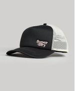 Esta gorra clásica, un modelo popular desde los años 60, es un básico emblemático de la moda vintage. Destaca por su comodidad y transpirabilidad al usarse durante un período prolongado de tiempo, y se abrió paso en la moda convencional para todas las edades y diferentes perfiles de personas. Esta versatilidad hace que sea una forma estupenda de rematar un look informal, tanto si te vas de viaje como si te quedas en casa. Panel de malla trasero, Correa ajustable, Visera curva clásica de camionero, Logotipo de Superdry bordado.